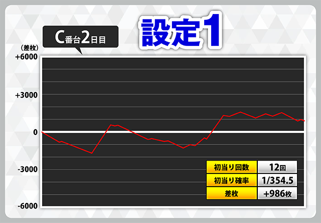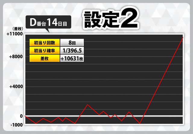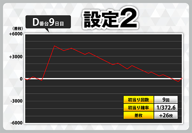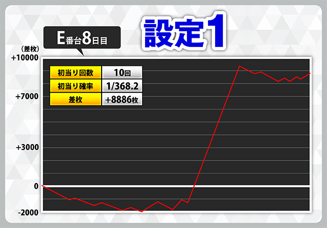 | 2 | +10631枚(設定2) | −7205枚(設定1) |