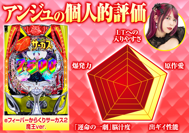 今回は『eフィーバーからくりサーカス2 魔王ver.』について解説してきました。いかがでしたか? 予習の最後は毎度おなじみ、アンジュによる超主観的レーダーチャートです!