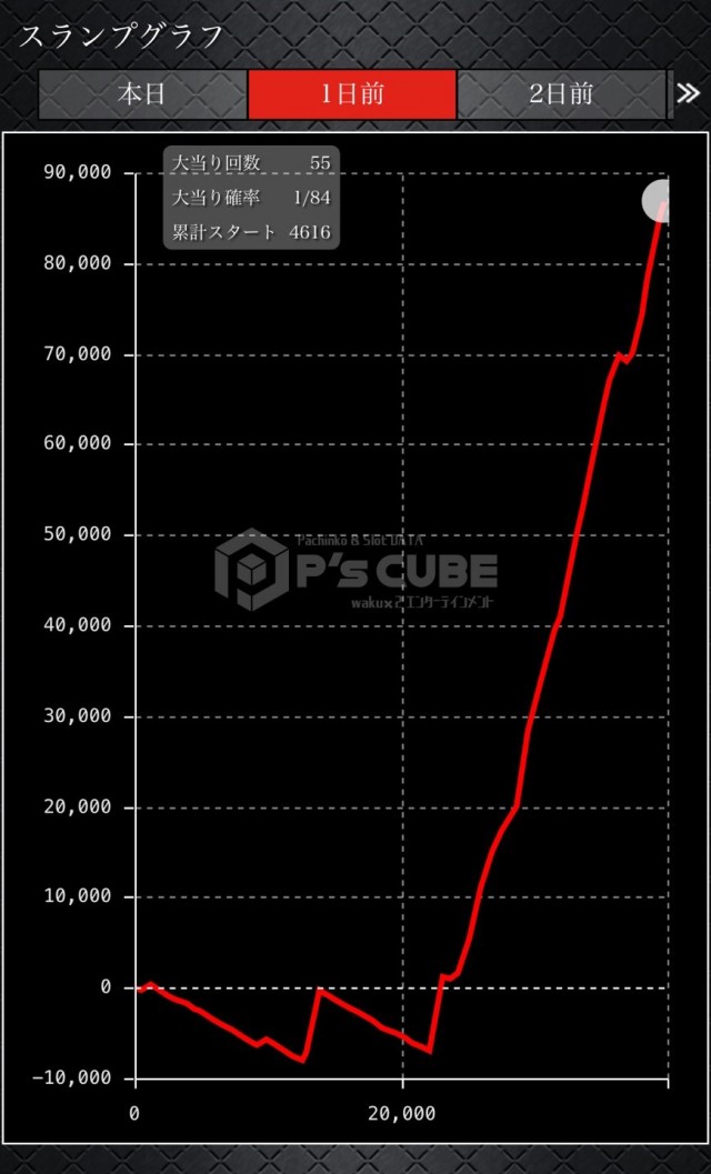 最大放出数でいうと【90,000~94,999玉】だった台です。