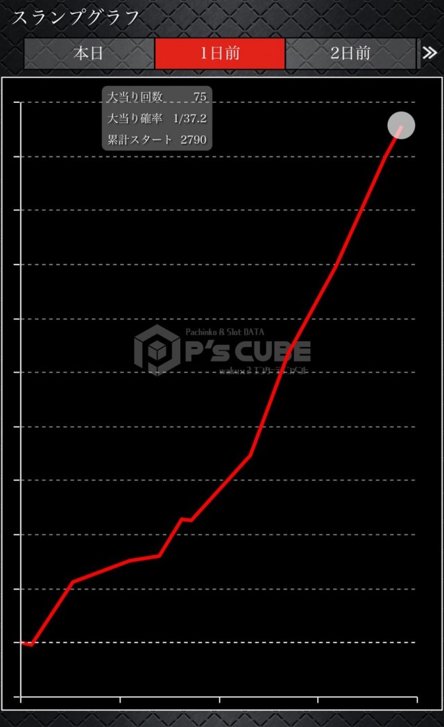※店舗により出玉数が記載されていないタイプのスランプグラフがあります