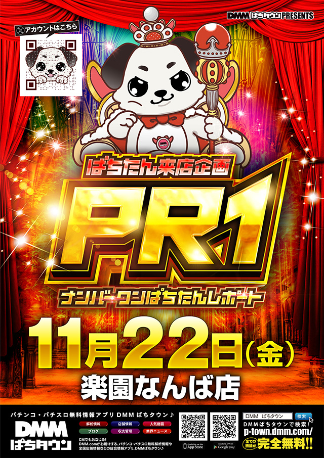 ぱちタウンの公式マスコットキャラクター「ぱちたん」が、王冠やマントを装備し、いつものお茶目な雰囲気とは異なる威厳を放つ装いで登場する取材企画。その名も、「PR1」!!