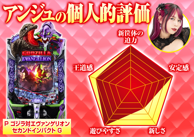 以上が『P ゴジラ対エヴァンゲリオン セカンドインパクト G』の要注目ポイントです。最後に、今回もアンジュ的レーダーチャートをまとめてみましたよ!