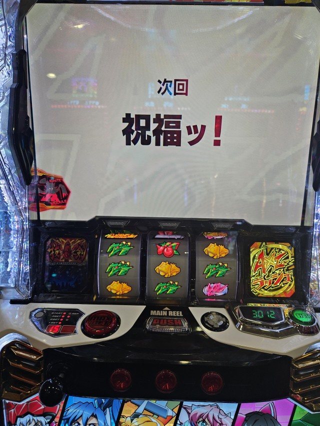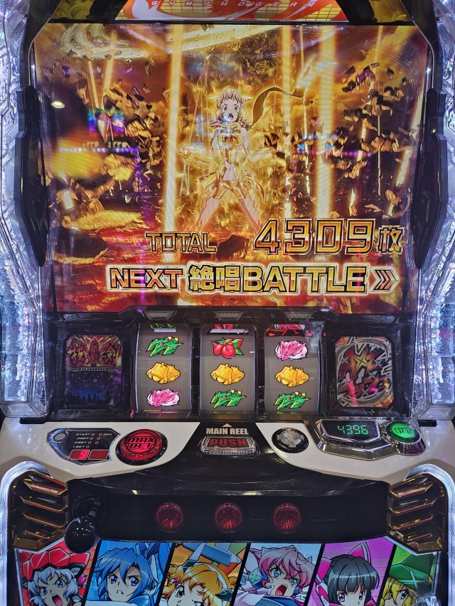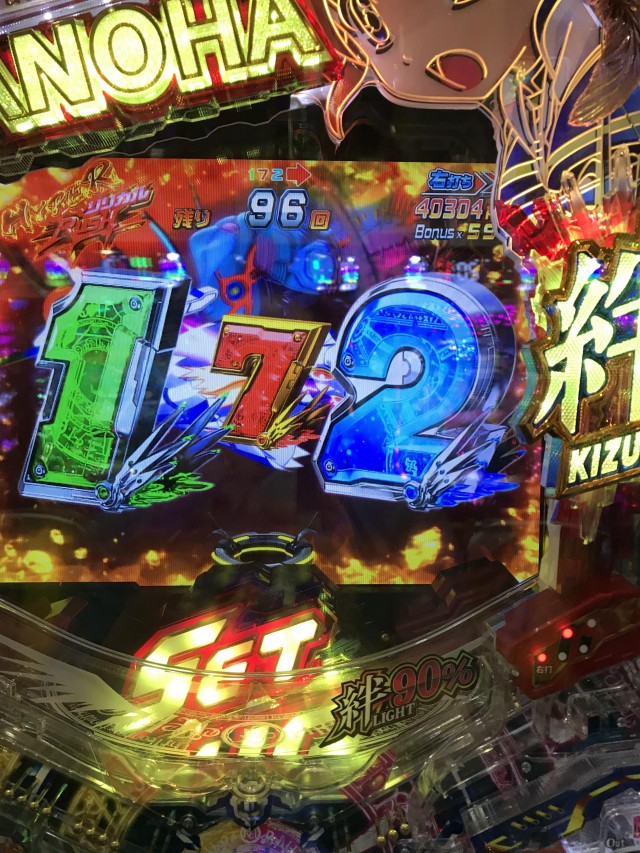 いつも朝イチからホールに行くことが多いのですが、その日は珍しく17時からホールへ、そして大好きなのにあまり設置が無くなってしまっていた「なのは」に着席しいざ勝負!