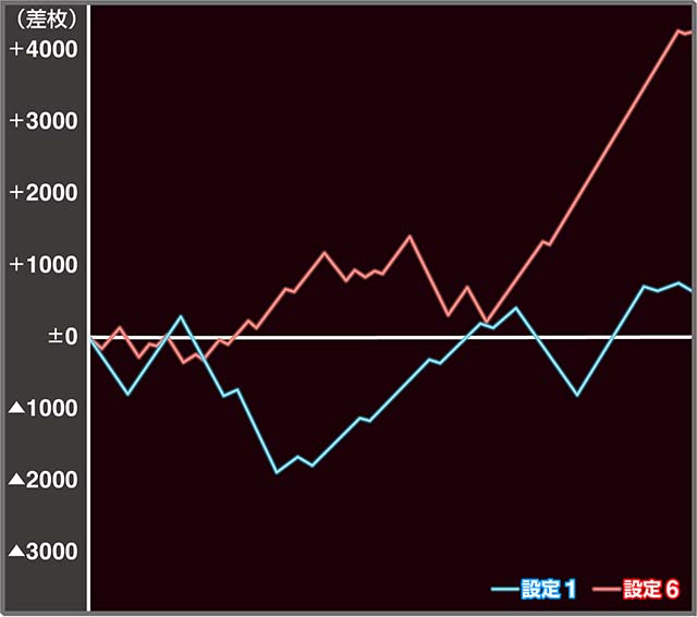 こちらも1/142.6(設定1)~1/105.9(設定6)と大きな設定差がついており、チャンス目からの当選を見抜ければ早い段階で設定判別もできそう。