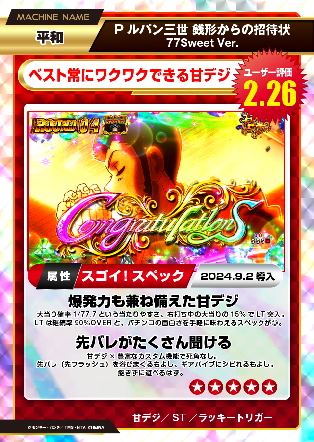 『Pルパン三世 銭形からの招待状 77Sweet Ver.』機種情報はこちら!
