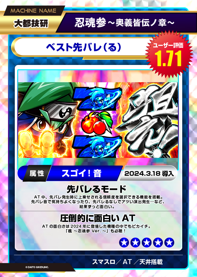 『忍魂参 ~奥義皆伝ノ章~』機種情報はこちら!
