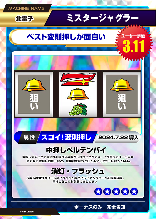例えば「●●●●の先バレ音がシビれた」だったり、「●●●●の確変システムが斬新でドキドキした」など、あなたの好きな機種の好きなポイントを投稿してください。