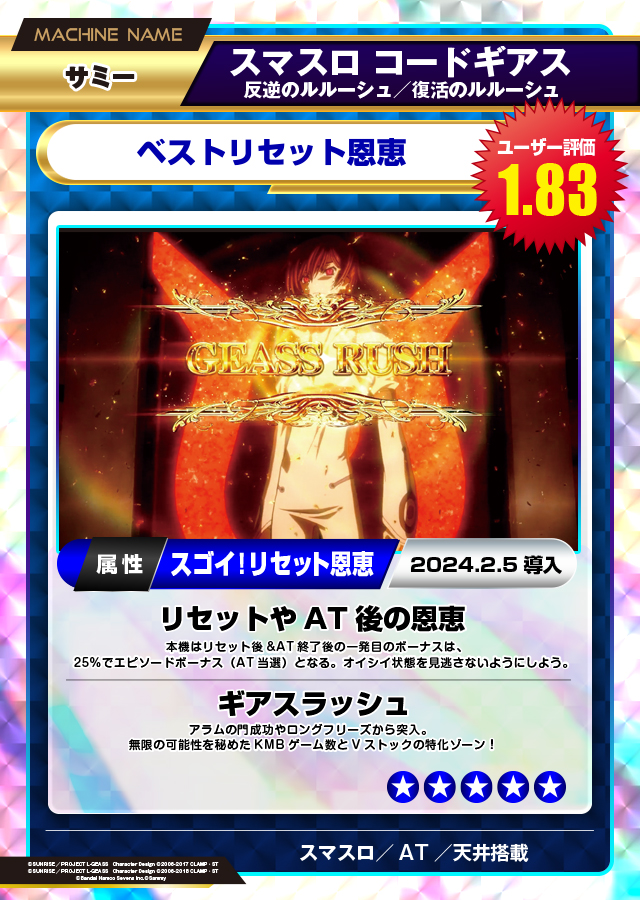 『スマスロ コードギアス反逆のルルーシュ/復活のルルーシュ』機種情報はこちら!