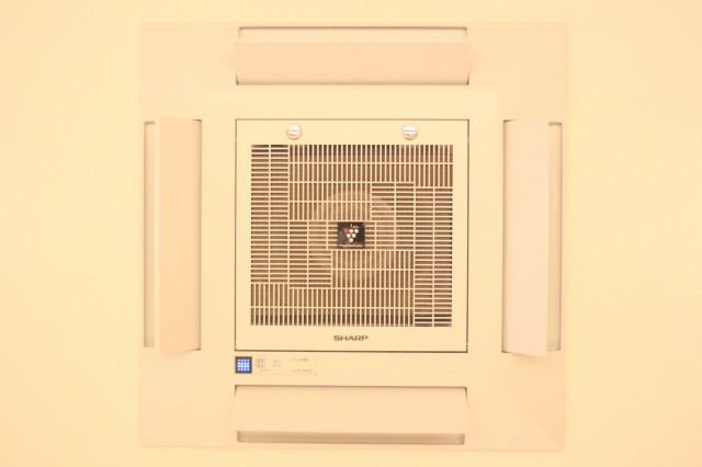 実は、ビルトインエアコンとは別にプラズマクラスター発生機が天井に仕込まれているのだ。 つまり、ビルトインプラズマクラスター発生機が店内には標準装備されている。