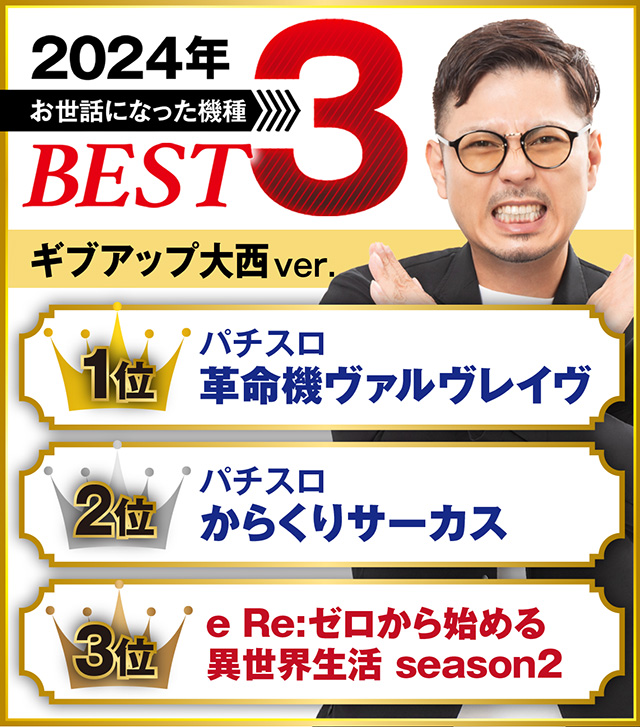 万枚も10万負けも経験した2024年ですが、改めて感じたのはギブアップ大西って名前は便利ですね。