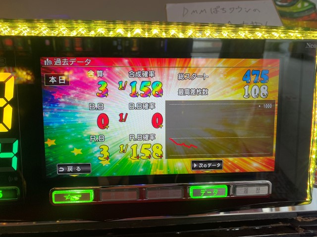 総ゲーム数475G BIG0 REG3。後ヅモ狙いで着席しました。