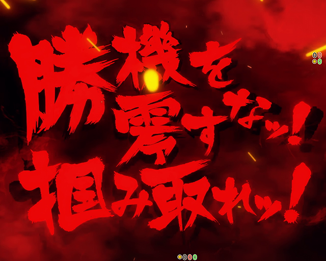 激アツのゾーン演出で、突入すれば信頼度急騰。約3回に2回は大当りとなります。文字が「唱」ではなく「勝」なら大当り濃厚です。
