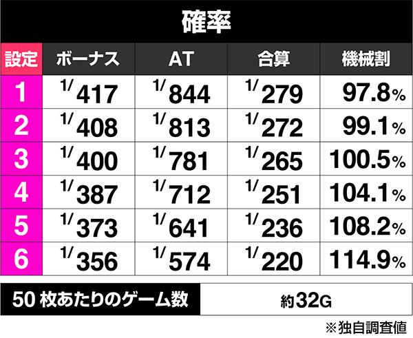 なお、高設定域は十分な機械割を誇っており、最高設定の“6”に関しては機械割が114.9%。高設定に期待できる状況なら打つ価値ありの機種と言えよう。