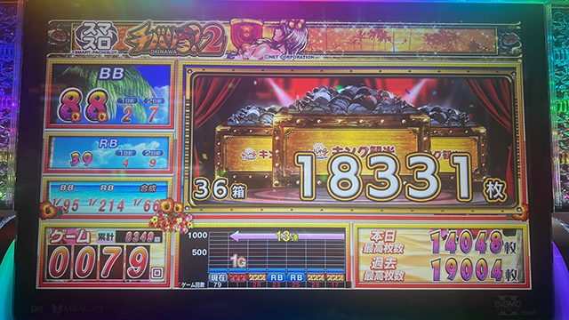 | 1 | BIG BONUS | 13連終了 獲得枚数:2655枚 |