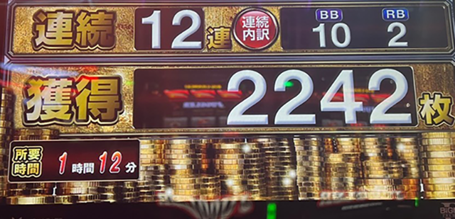| 4 | BIG BONUS | 12連終了 獲得枚数:2242枚 |