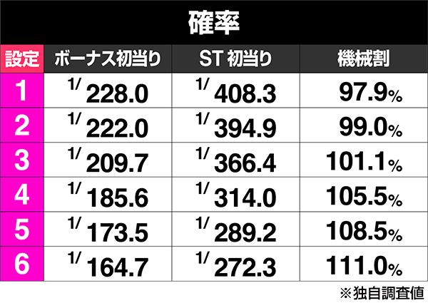 ST突入の契機となっているボーナスの初当り確率はかなり高め。設定1でも1/228.0となっているので注意。