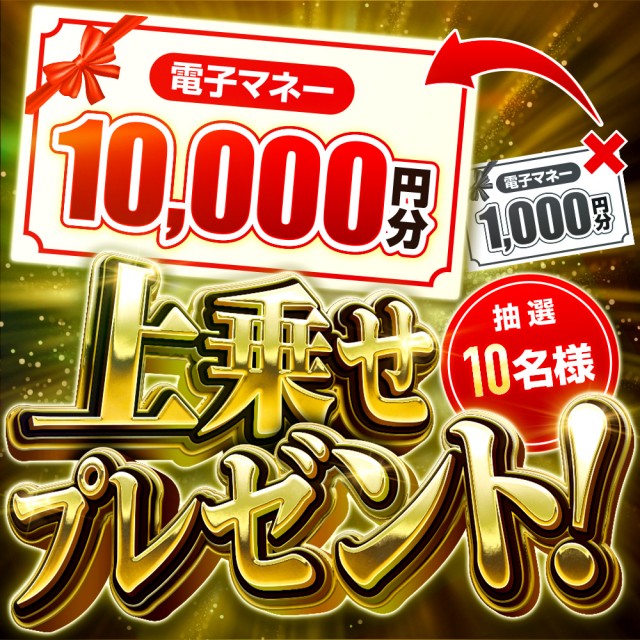これまで「電子マネー」は抽選で10名様に1,000円分というほんのりプレゼントだったところを緊急増額して、抽選で10名様に10,000円分の電子マネーをプレゼント!