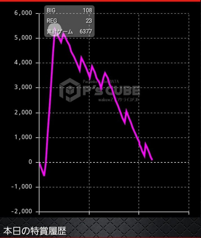その夜、あの台どうなったのか見てみようとぱちタウンのサイトを見ると、5000枚から-5000枚で地面着地。ヤメてよかった。出玉性能が良くなるのはいいけども、自分はやはりノーマルでコツコツやるのが好きです。(イーサンさん)