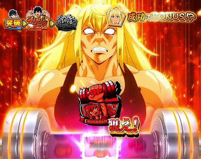 高純増が魅力的なSANKYOの『Lパチスロ ダンベル何キロ持てる?』。