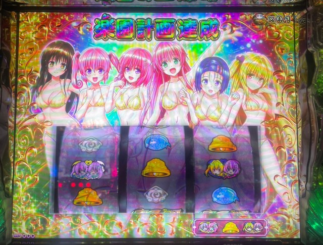 ●ハーレム計画のヒロインたちの衣装を見て鳥肌が立ちました。理由は、その衣装がToLoveる15周年記念原画展で販売されたアクリルスタンドの衣装だったからです。他にもオリジナル楽曲搭載やこれは後から知ったのですが、ラブスプラッシュの第一、第二停止時の枚数がそれぞれヒロインのバスト、ヒップのサイズになっていたりと、こだわりが伝わってきました。(アンコさん)