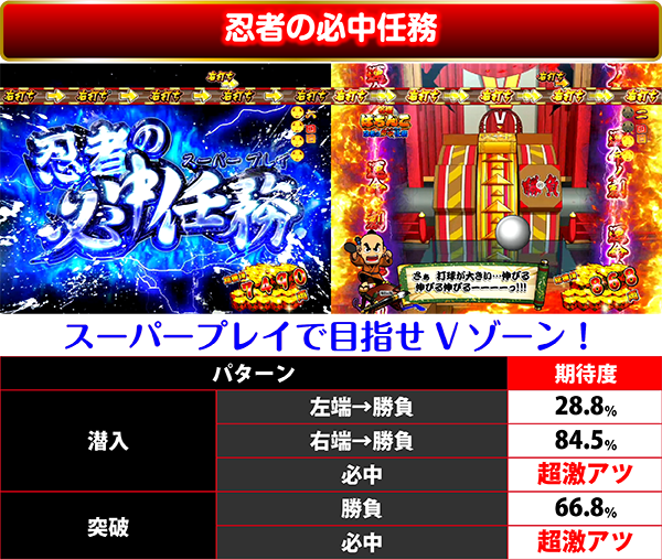 潜入ルート時は玉の動きに注目。右からの勝負ならば大チャンスとなる。
