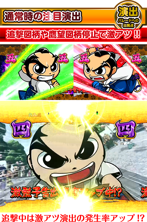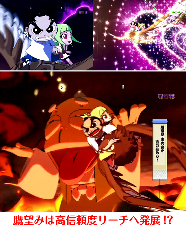 本機における激アツ柄は「鷹柄」となっており、様々な演出で発生する可能性を持つ。