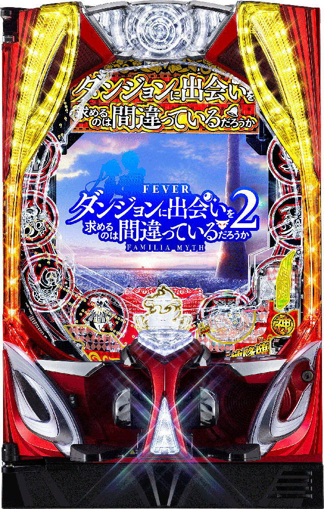 これはもう新台Rで取り上げねば。そんなワケで今回、ご紹介いたします新台はコチラ、『eフィーバーダンジョンに出会いを求めるのは間違っているだろうか2』です! 『ダンまち』といえば、登場する女神・ヘスティア様の例の紐(胸と両腕の周りを1周してるアレ)でお馴染みですよね。