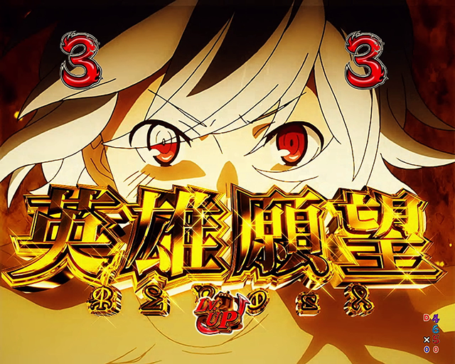 ロゴ役物の「英雄願望」がすべて点灯すれば上乗せとなります。