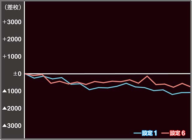 全体的にマイルドな台なので、上記のようなグラフはよく見ることになりそう。グラフで設定が見抜けるかと言われると難しいですが、出現率に設定差のあるボーナスの回数などは内臓データで確認できるので、立ち回りの参考にしてみてください。