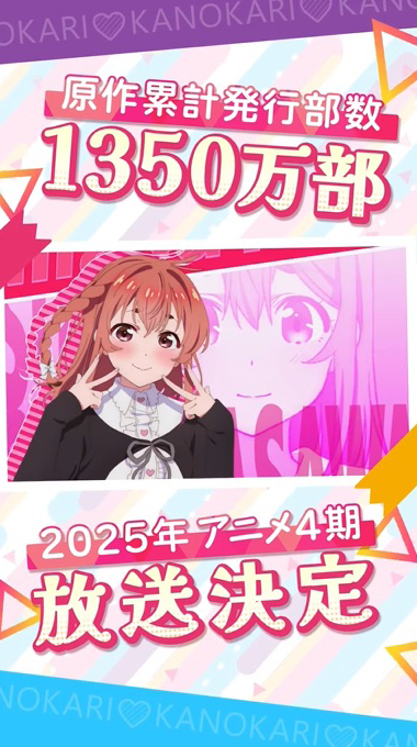 待望のパチンコ化を遂げた「彼女、お借りします」とは、原作累計発行部数1350万部、2025年にはアニメの4期が放送決定している大人気ラブコメ。