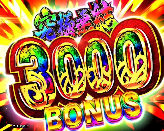 初当りの最高形となるボーナス。出玉3000個(10R×2回)を獲得したあと、LTに直行します。
