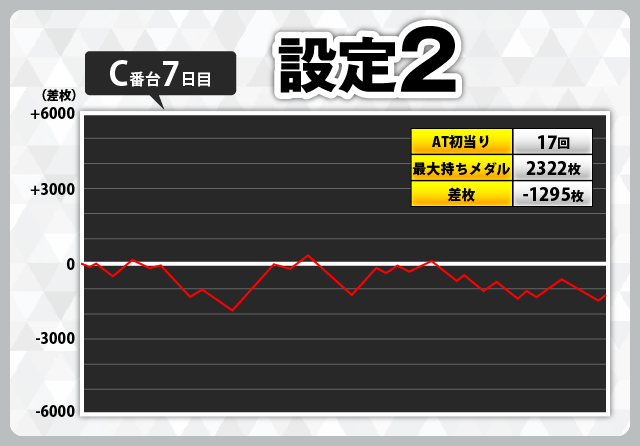 | 2 | +7997枚(設定6) | −4739枚(設定1) |