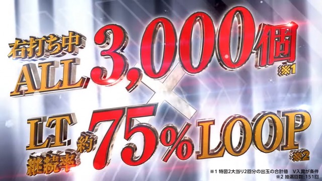 3000個大当りの75%ループ…この情報だけでも高いポテンシャルを秘めた台であることが予想されるが、PV内では「6000BONUS」「9000BONUS」の画面も確認できる。