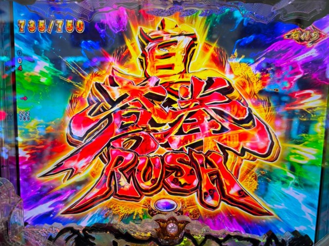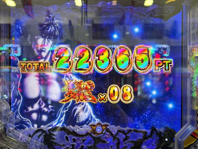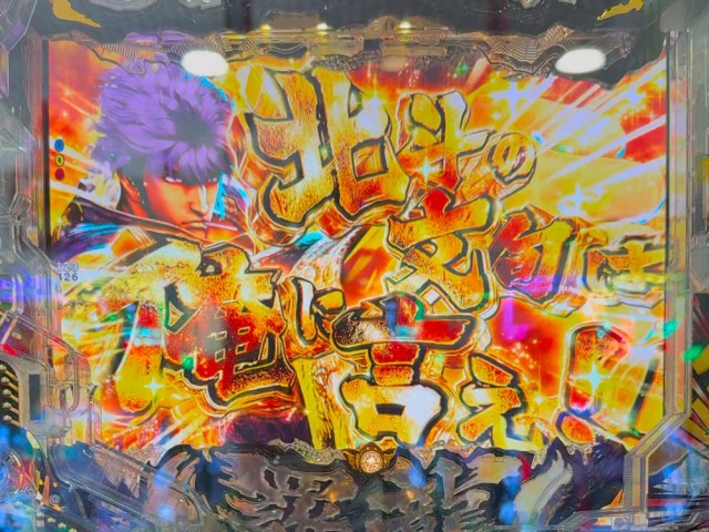 やっぱりダメだ、帰ろうと思い、カードに残った1kを消化するために『e蒼天の拳 羅龍』に座り、設定を激アツにして打ち出した1回転目でレバブルと爆音が!