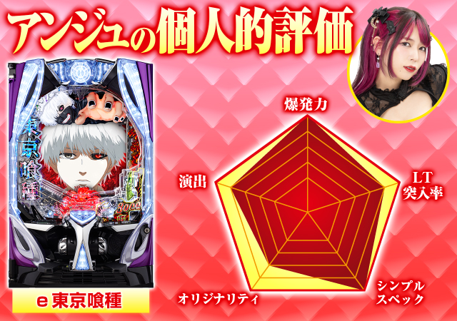 しかしまあ、本当にこのままだと今月も大負けの予感。ここは一発逆転できる台を探さねば…。って、ちょうど良くこの4月に、「4つの最強」をうたう台が登場するんですよね〜。それがコチラ、『e 東京喰種』です!