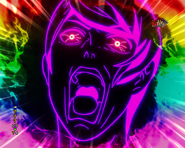 おなじみ保留変化は、赤保留なら約8割が大当りに。金保留までいけば約9割が大当りに結びつきます。また緑と赤の間に紫保留があり、そちらだと約3回に1回は大当りとなります。