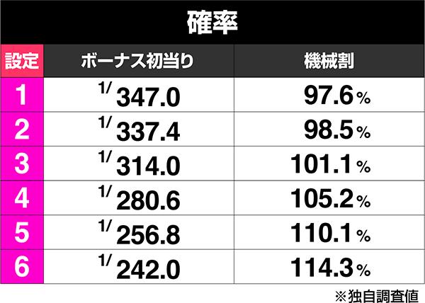 ではここからは設定差を解説していきます! まずはボーナス初当り確率から。