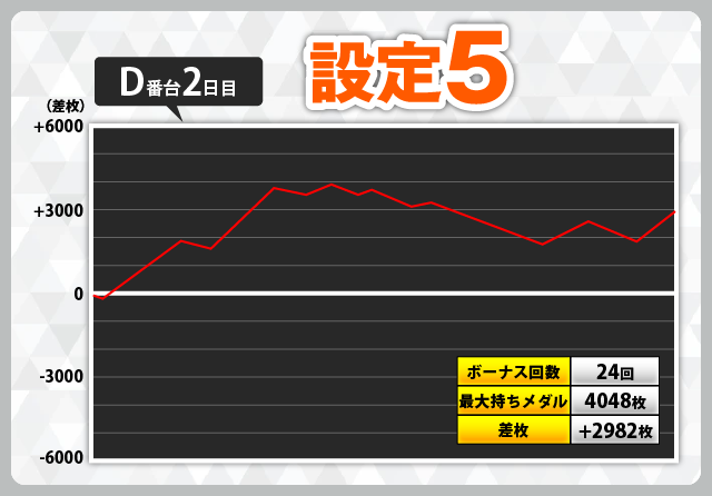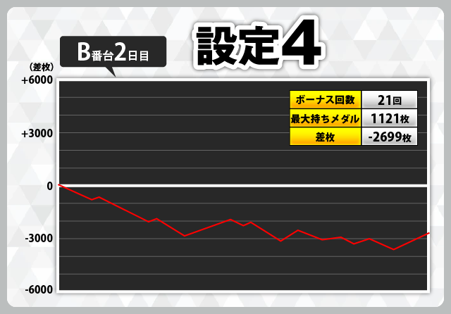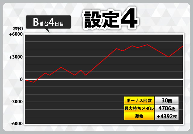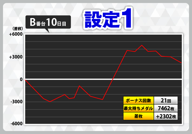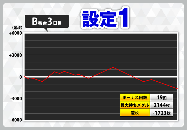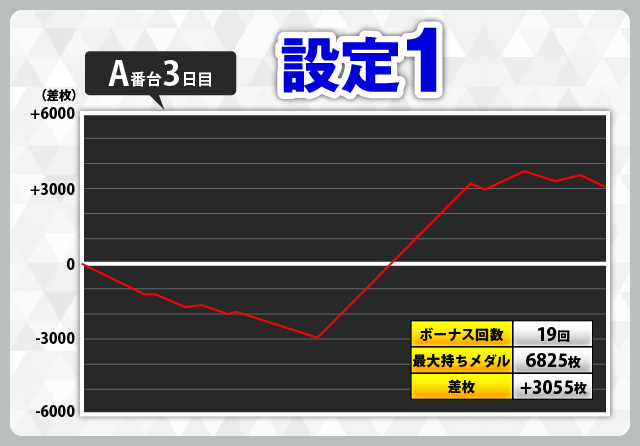 | 3 | +5402枚(設定1) | −6030枚(設定1) |