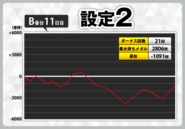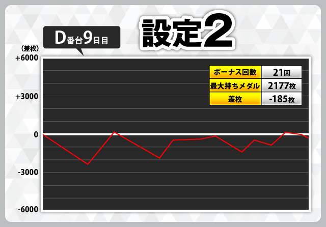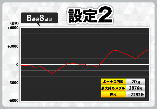 | 2 | +6296枚(設定1) | −6112枚(設定1) |