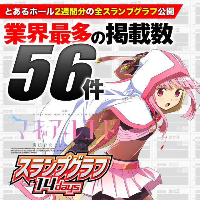 とあるホールから入手した人気機種のスランプグラフを設定付きで掲載&考察していく当企画! 今回は『スマスロ マギアレコード 魔法少女まどか☆マギカ外伝』の2週間分のスランプグラフをいただきました。