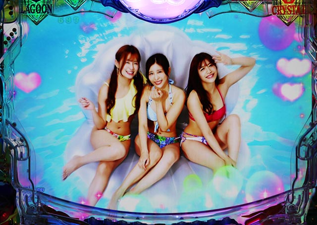 画面内にリーチならない形で同じ図柄が上・中・下段に停止すればチャンス目成立=先読みとなる。ラグーンモードでは発生時点でスーパー発展濃厚で、その他のモードでは3回連続で同様となる。