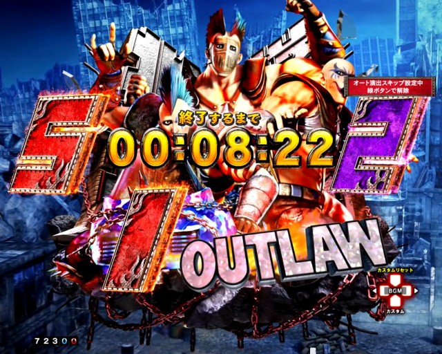 さらに変動中にレバーを引きながら緑ボタンを10回押するとオートスキップモードがセットされ、毎回転を自動でスキップしてくれる。こちらの設定後は緑ボタンをもう一度押すことで解除できる。