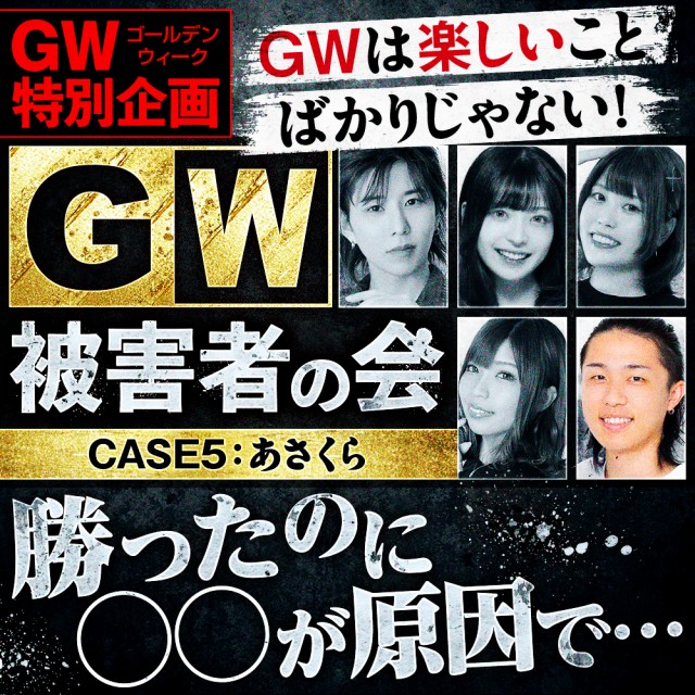 「GW被害者の会」最終日は、ぱちタウンタレントのあさくら(@asakura_tezza)が担当します。