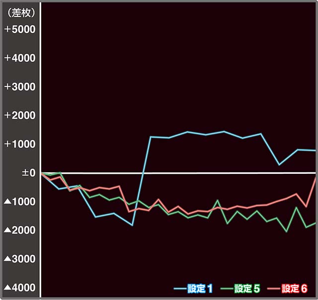 なお、今回の3つの設定の挙動を見るにスランプグラフだけでは設定の高低はわかりにくいんじゃないかなぁと思われます。