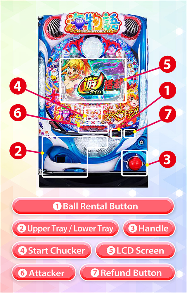 We'll use 'Big Sea Story 5 SPECIAL' as an example to explain how to play pachinko.