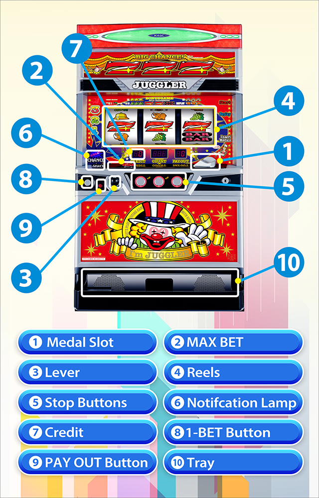We'll use 'I'm Juggler EX' as an example to explain how to play Pachislot.