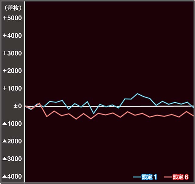設定1と設定6を比較してもこれといって大きな差はなく、設定6に至っては公表値よりも大きく下ブレ。ホールでこのデータを見かけたらなかなか打ちづらいですよね…。