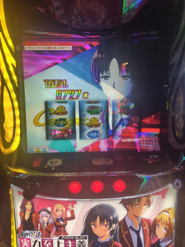 仕事の休みの日に開店からパチンコ屋へ出かけ、夕方までに約7万負け。今日はもう諦めようと思ったその時、新台の『ようこそ実力至上主義の教室へ』に空き台が。実は原作を読むほどのこの作品の大ファンである私は少し味見程度に打ってみるかと最後の一勝負をかけたのです。