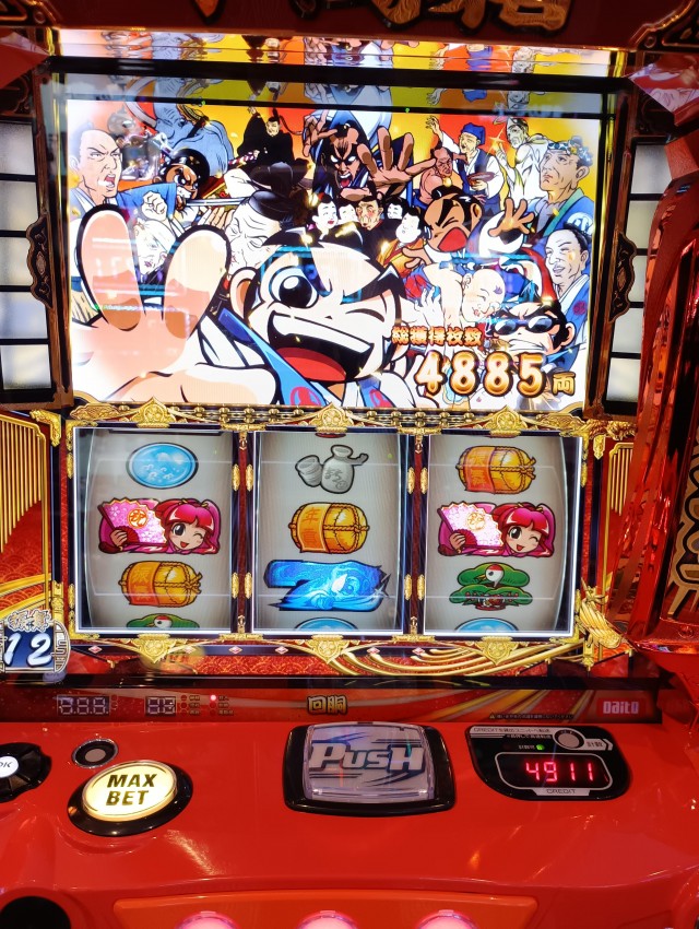 ようやく吉宗のリバイバルが出た。良くも悪くも昔のままである。当時学生の頃、朝から456の札が刺さった台に座り、12時までに12000枚ほど獲得。席の後ろには、5000枚ほど入る千両箱が3つ。夢の2万枚目指しちゃうぞーと意気込み回し始めるも3連続1930G天井レギュラー単発。見事に9000枚以上ノマれ、閉店間際には手元に一箱と席の後の空の千両箱。