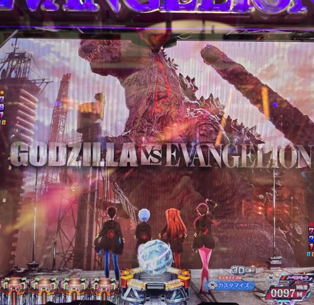 『ゴジラ対エヴァンゲリオン セカンドインパクト G』にて、バイブ保留(!?)出現と共にレバブルでレイ背景、そして初号機vsゴジラから勝利・任務完了の大当りゲットですねん!(モンちゃんさん)